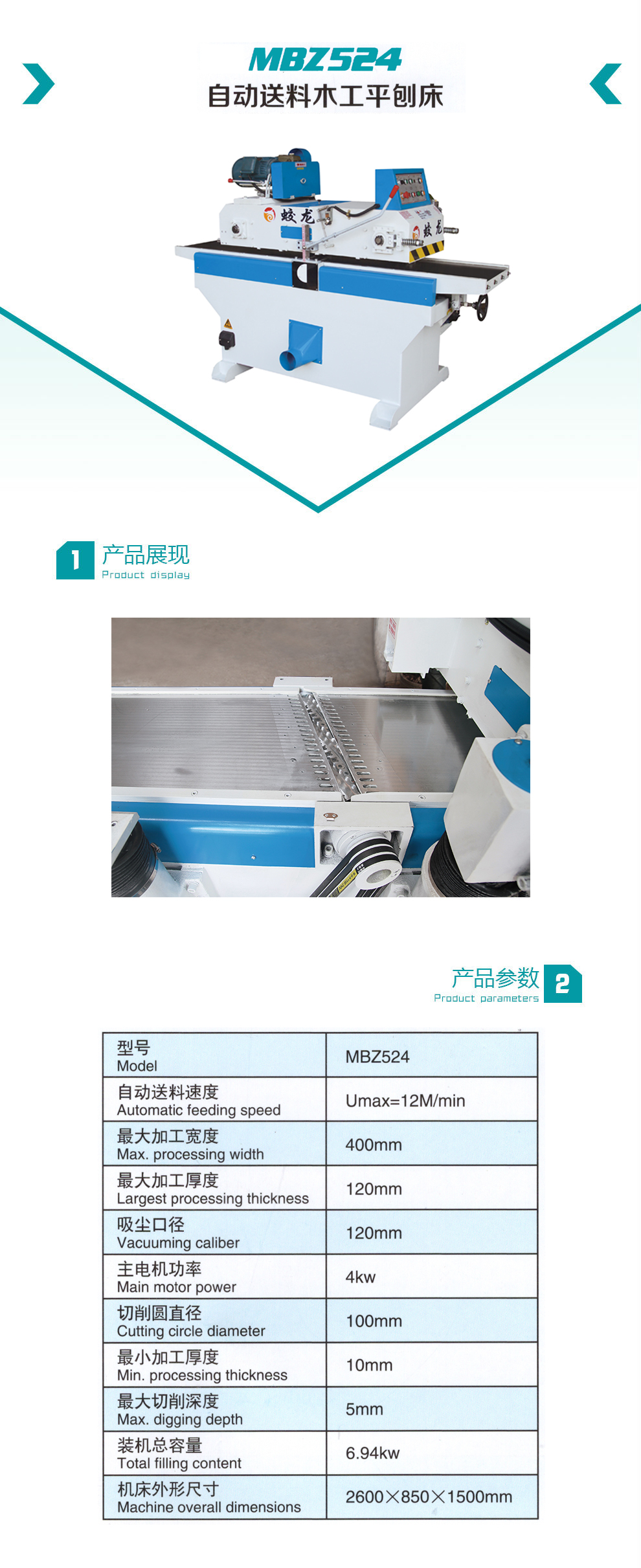 蛟龙机械—MBZ524 自动送料木工平刨床