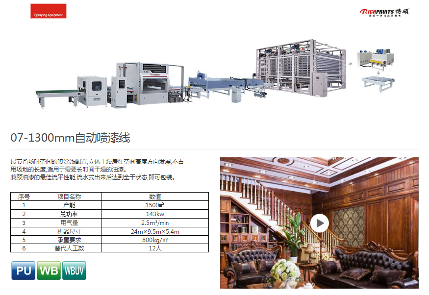 博硕—1300mm自动喷漆线-UV、WBUV